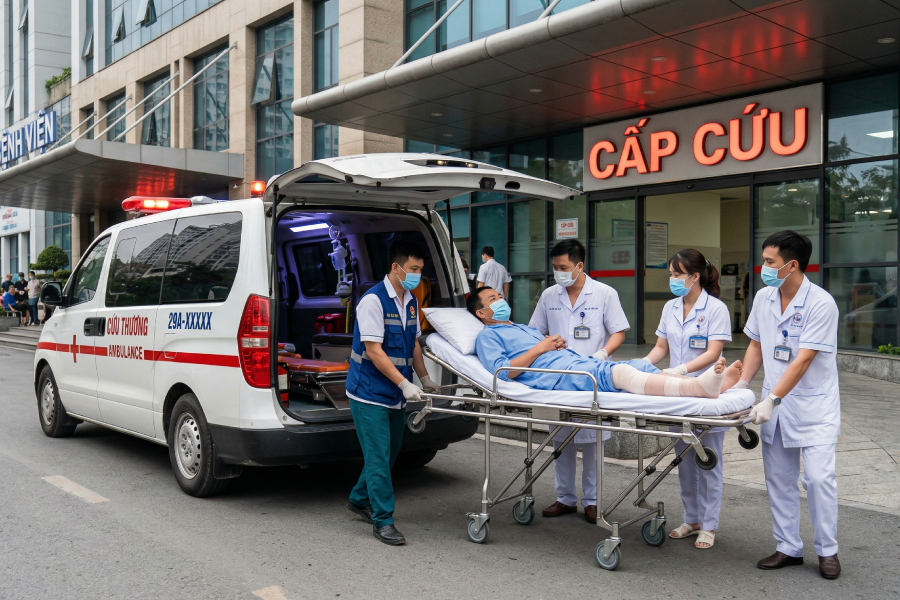 → Được tiếp nhận cấp cứu ngay tại cơ sở y tế gần nhất.